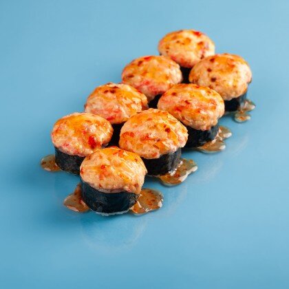 Рис SHINAKI, нори,сливочный сыр, копченная курица, огурец, сыр витязь *В составе шапочки присутствует молотый чеснок