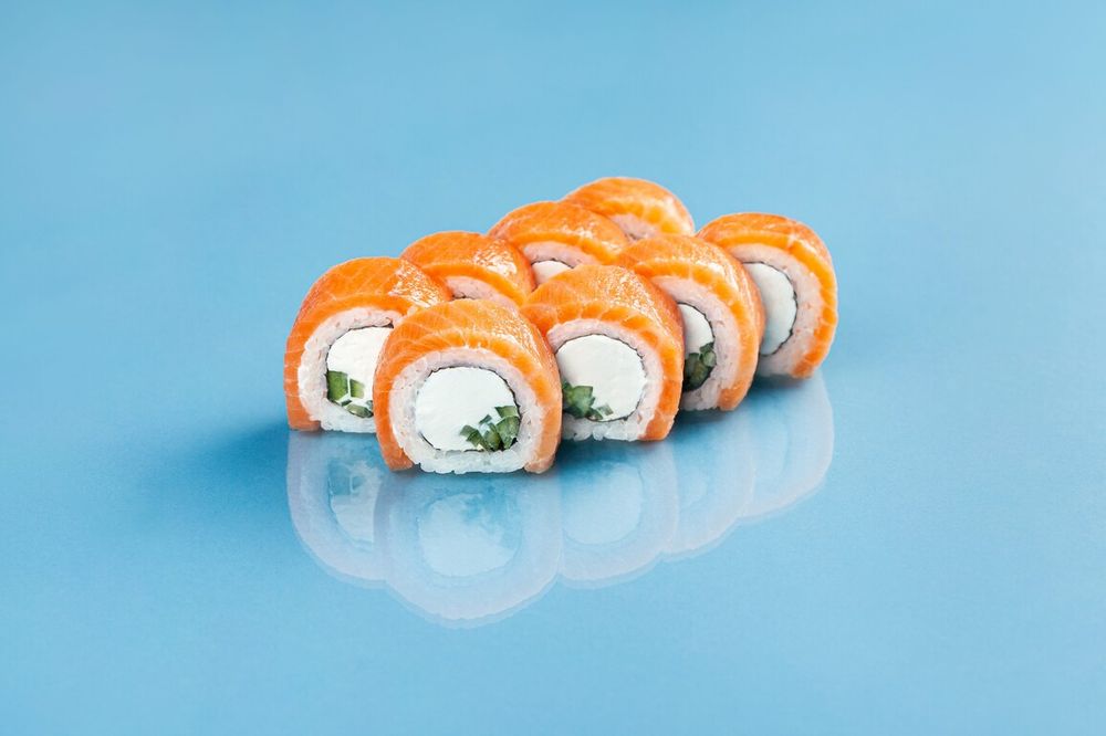 Рис, нори, сливочный сыр, огурец, норвежский лосось