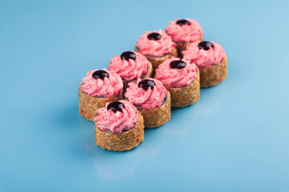 Рис SHINAKI, жареный норвежский лосось, нори, сливочный сыр, лава шапка, сухари Kaneshiro Premium 1 порц= 8шт