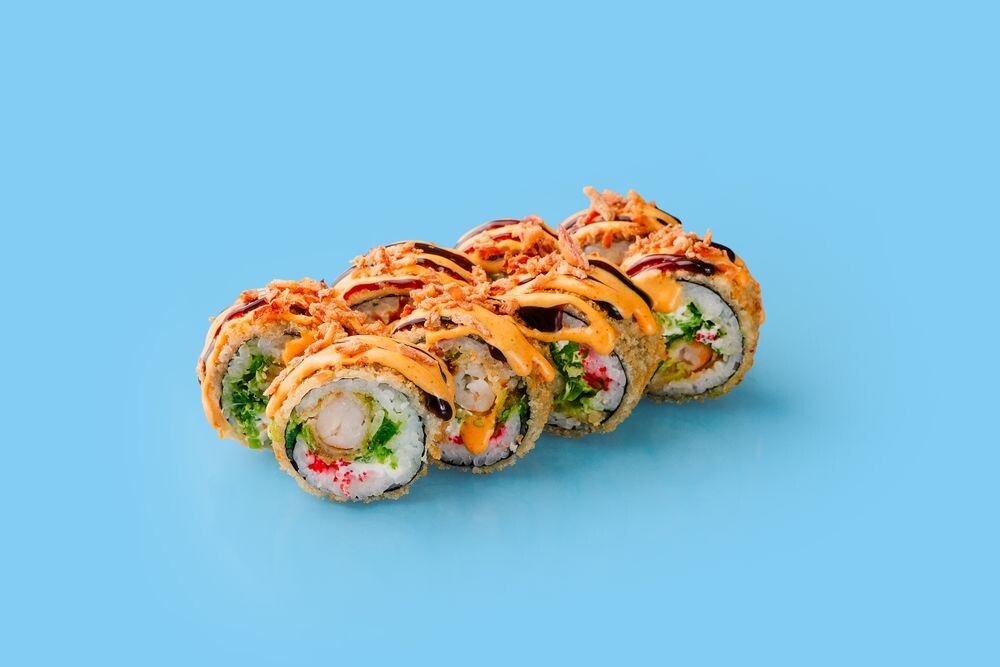 При обжаривании ролл опускается во фритюр на несколько секунд, поэтому роллы могут быть не горячими - это соответствует технологии