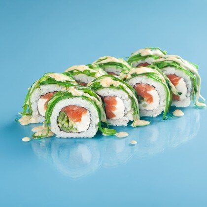 Рис SHINAKI, нори, сливочный сыр, огурец, норвежский лосось, сыр Hochland